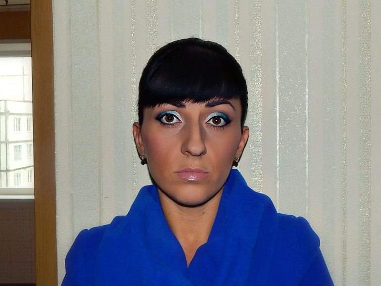 так вы с претензией на визажиста? ))) да боже упаси стать вашим клиентом))) для справки , у вас очень резкий переход от белого к синему ( и даже не голубому).да к карим глазам не очень удачное сочетание насыщенного синего цвета.