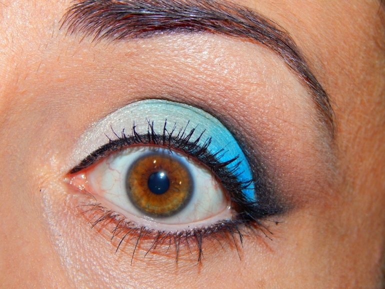 МакияжНачинаю макияжи в сине-голубых оттенках. Подходят серым глазкам, голубым, карим. Кроме зеленых