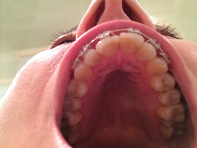 Уход за зубами2 месяца уже в них. Пластиковые. Дуга белая, но т.к. Все ходит, истерлась. Завтра металл поставят. Удалены верхние восьмерки. Ходить 1.5. Хотя линия вроде уже скоро востановится. Ну и фото