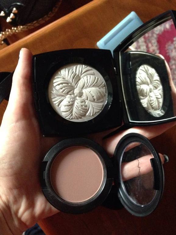 Скулы: румяна от Мак (Harmony) и розовый цвет в палетке от Nocibe