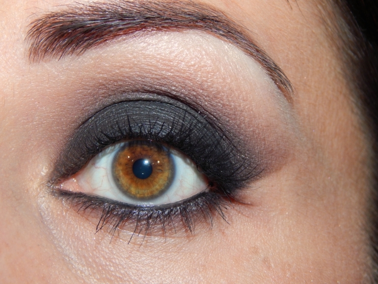 МакияжОдин из любимых макияжей. Использовала 2 палетки теней. Черный с мелким блеском очень шикарный. Приклеила пучки. И сделала 3 разных прически)))