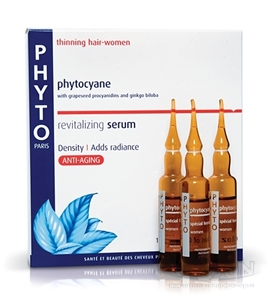 После основной стадии решила продолжить восстановление и выбрала еще одни капсулы - Фитоциан Phytocyane Revitalizing Serum. редство против выпадения и старения волос у женщин Phytocyane Phyto объединил в себе преимущества укрепляющего ухода против выпадения волос и косметического средства, корректирующего признаки старения. Средство против выпадения волос у женщин с процианидолами винограда и гинкго билоба . Рекомендовано при реакционном диффузном выпадении волос у женщин (диета, стресс, роды, хирургическое вмешательство). Предупреждает выпадение и старение волос, ускоряет их рост. Производное тирозина предупреждает появление седины. Протеины шелка придают объем и блеск волосам. Это лечение и эстетика. Клинические испытания доказали эффективность против выпадения волос у 85% испытуемых, увеличение объема у 94%, волосы легче уложить у 97%, волосы сияющие и мягкие в 100% случаев. Результаты испытаний вынесены на упаковку.
