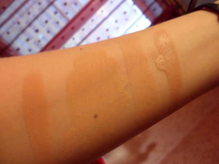 На руке:1-4 : Шисейдо № I 20 ; 2- тональный от Герлен №01, №3 -Лореаль № 2
