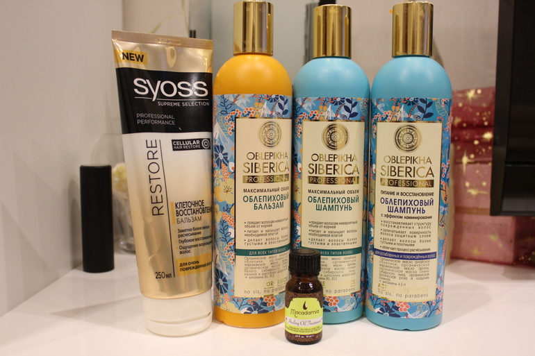 Итак, вот что я делаю. Я перешла на безсульфатные шампуни. В основном это Натура сиберика, мой фаворит - облепиховая (да, много тут про нее писали, кому-то подошла, кому-то нет, но я в восторге). Дополнение: мне тут раскрыли глаза, что как раз облепиховая серия не безсульфатная, не знала, но все равно мне и волосам нравится) Причем обратите внимание, что в этой серии есть разные шампуни. С эффектом ламинирования каждый день применять не рекомендую, иначе волосы потом будут выглядеть, как грязные. Раз в неделю-две достаточно. А вот их шампунь для объема можно применять постоянно. Еще бальзам обязательно. Масло на кончики (очень крутое у Macadamia). Иногда маску (не часто, примерно раз в неделю), маска Macadamia нравится, на фото ее нет, закончилась. Феном пользуюсь постоянно, ну не могу я ходить с мокрой головой. Утюжками и плойками почти не пользуюсь. Не крашу волосы.