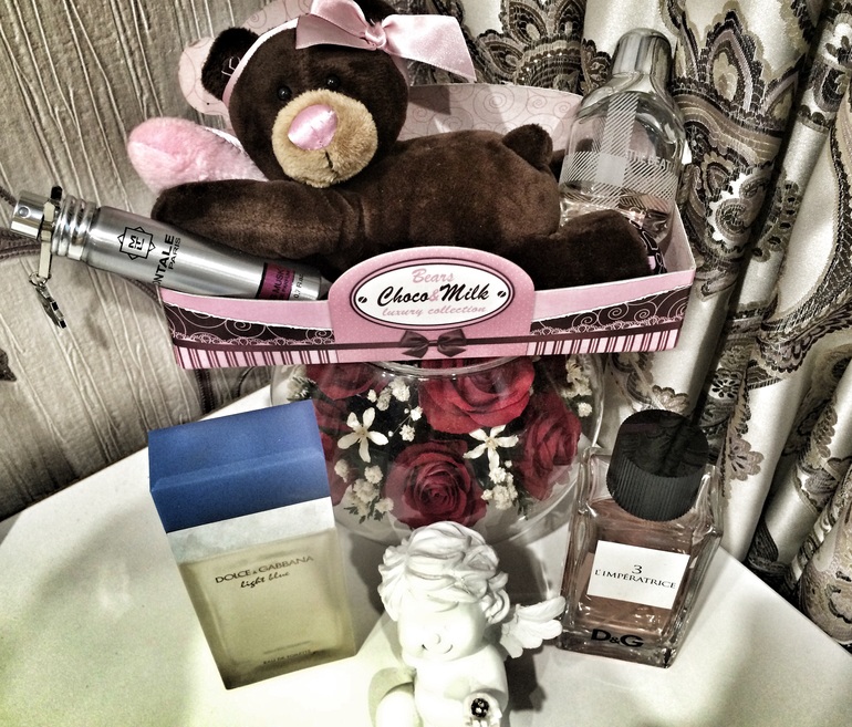 Вообще, духов у меня много небыло никогда. Всегда было так, если понравился один аромат, то все пшикаюсь пока флакон не кончается)))
