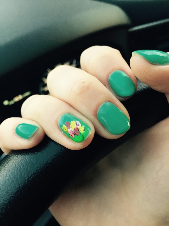 Лаки с косметичкой Estée lauder сестра подарила-пока не пробовала-но цвета необычные, можно сочетать между собой-сейчас шеллак на руках, так что попробую позже, кстати вот такой у меня 8-мартовский маникюрчик)