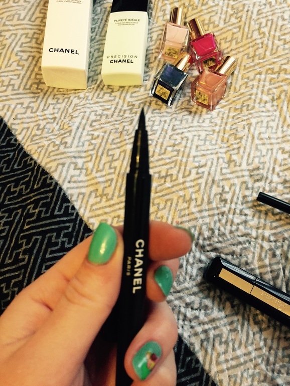 ничего сказать не могу-до этого не пользовалась средствами для бровей-вот решила, что надо! Кисточка клевая, карандаш мягкий, легко наносить, но может из-за того, что я не умею пользоваться-виден все таки) подводка Шанель фломастером