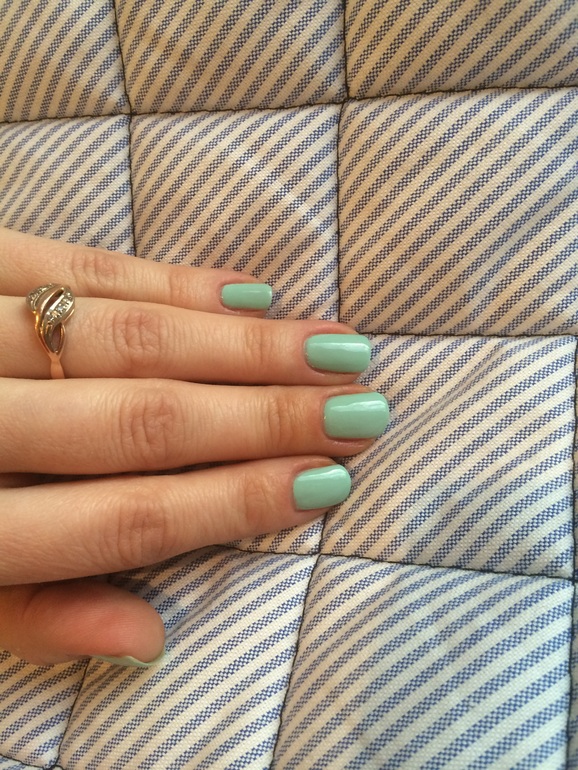 Красивый цвет, люблю его сочетание с бежевым, недавно делала бежевые ногти и мятные лунки, смотрится очень классно!