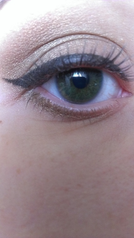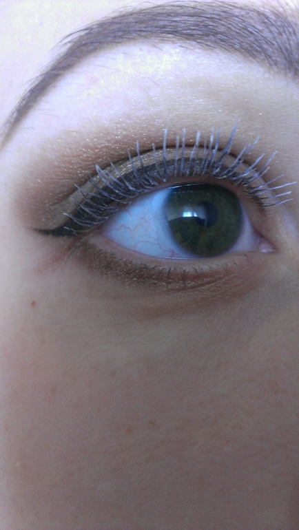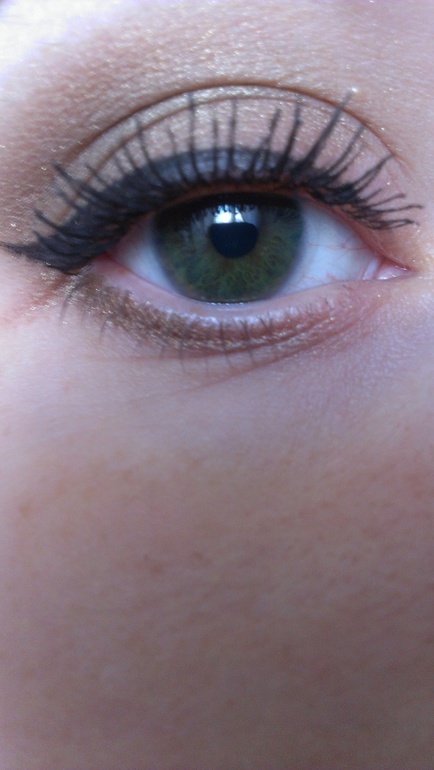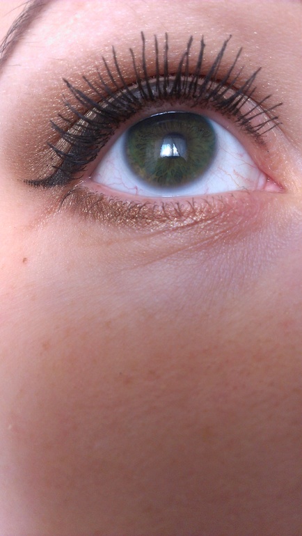 Севершенно невероятно, но на эту базу просто шикарным образом ложится тушь! Любая! Она буквально скользит по ресницам и вы можете смоделировать свой вгляд по вашему усмотрению))) Здесь у меня дешевая тушь от Эйвон, которой я уже лет 5 верна (она у меня есть в косметичке всегда, даже если я пробую что-то новое)