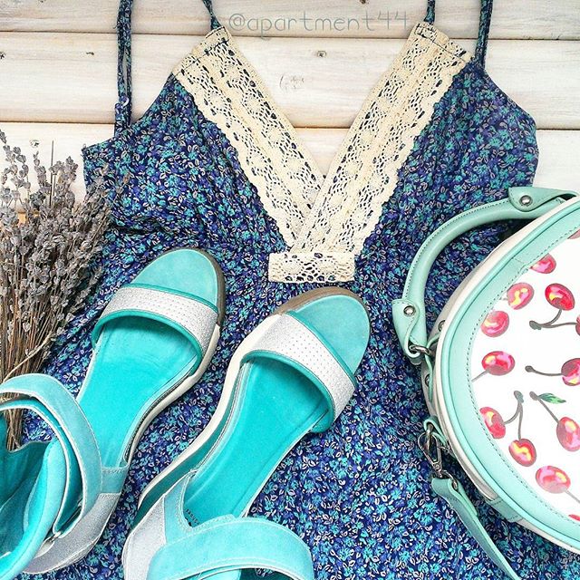 На вас было бы более понятно. По цветовой гамме вопросов нет в принципе, возможно белая сумочка смотрелась бы гармоничнее, если сарафан короткий думаю все сидит отлично.( просто интересно, ремешки на щиколотке не сильно "перерезают" ногу??)