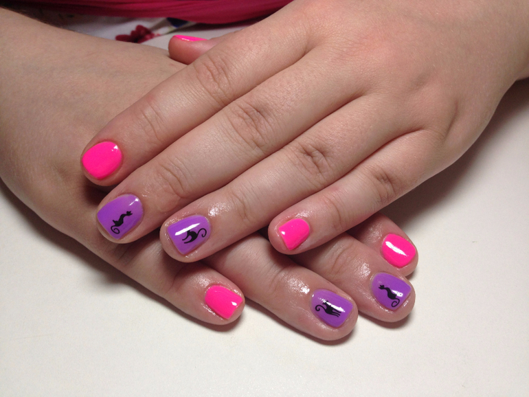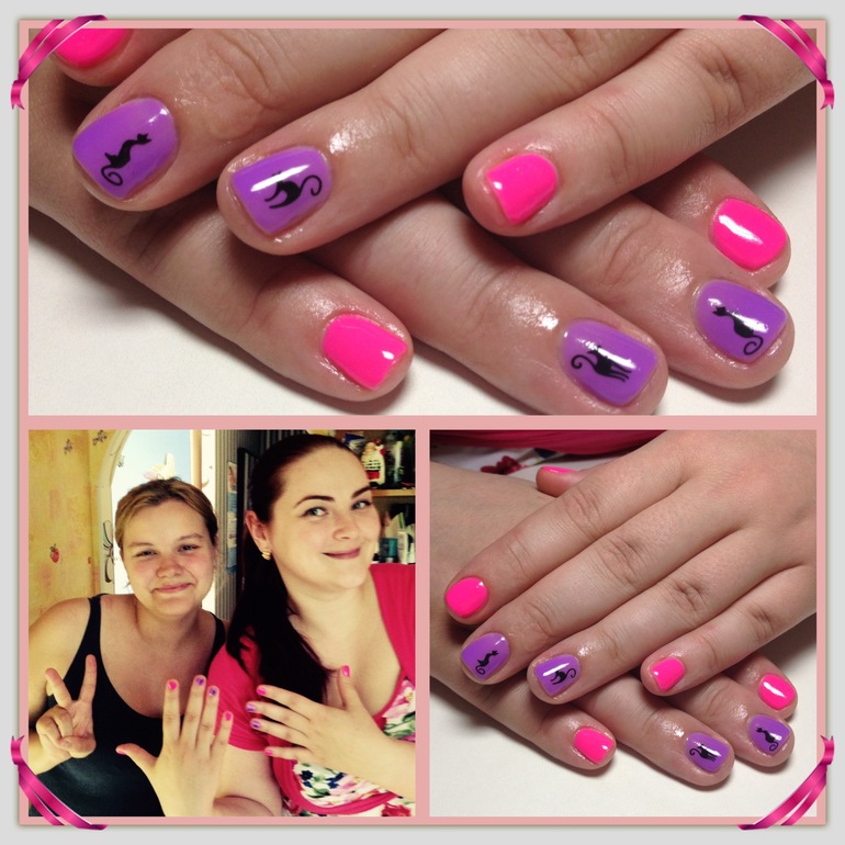 Приехал ко мне приятный, позитивный, открытый человек с огромной сумкой))))) Там куча разноцветных гель-лаков,пилочек, инструментов и огромная лампа. Всё как и должно быть. Инструменты Катя стерилизует дома в спец. стерилизаторе и еще при клиенте протирает на всякий случай спиртом. Мы очень весело болтали о детках,о жизни и незаметно сделали маникюр за разговором. Потом муки выбора цвета как обычно. Наконец-то я выбрала, но Катя посоветовала мне еще украсить. Я сомневалась, но коты меня покорили.