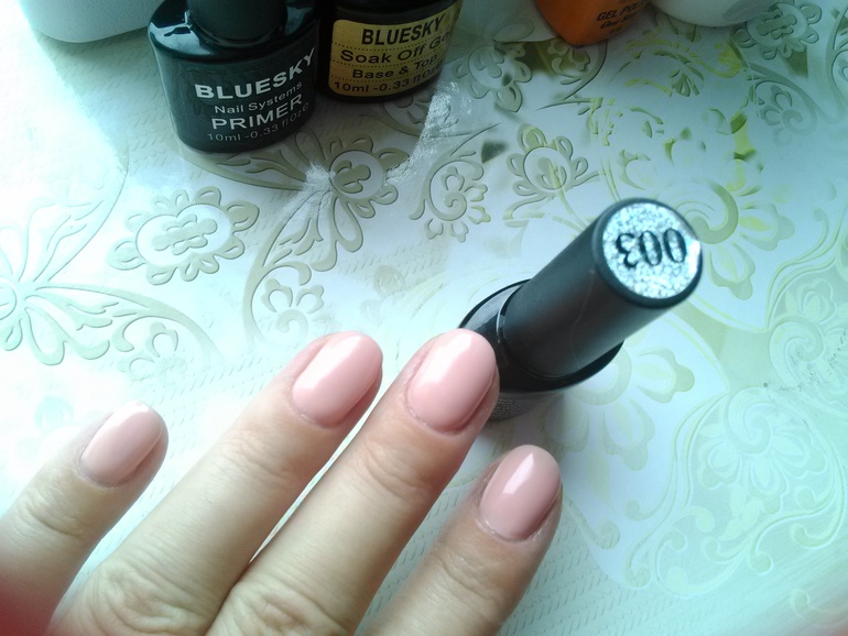У меня тоже Блюскай. Праймер не использую, сушу все слои по 2 минуты. Топ у меня без липкого слоя. Девятый день пошел уже, ни сколов, ни царапин, только ноготь отрос. Под гель-лак и кладу IBX систему, чтобы и держался лучше, и свои ногти укреплялись, а не портились