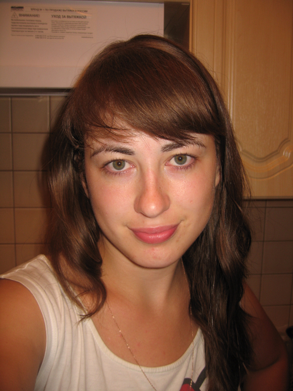 вам и с челкой неплохо,только брови хочется посветлее ,если подрисовываете их