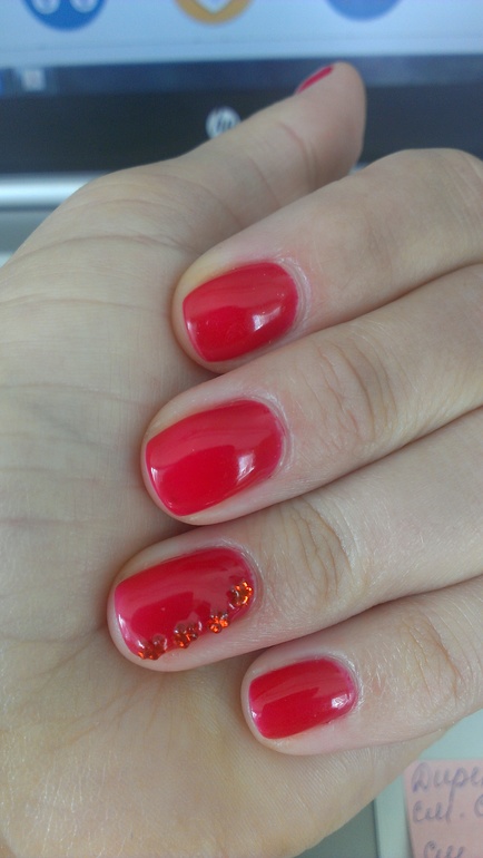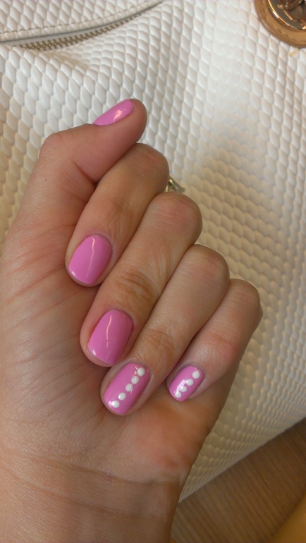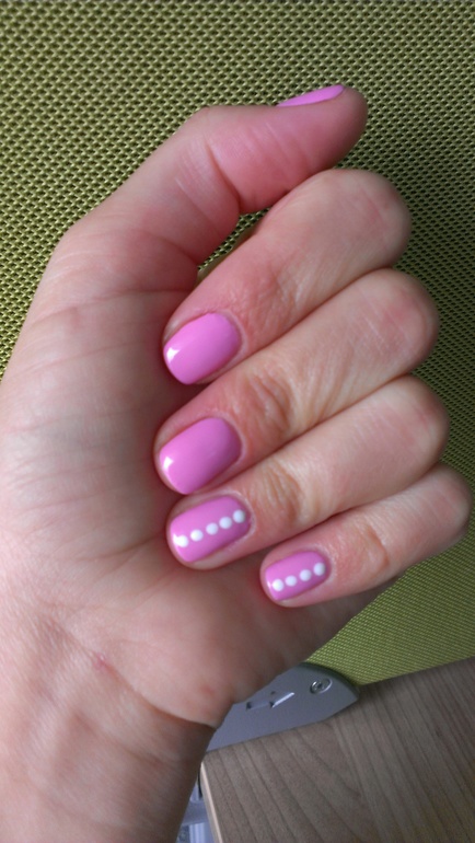Здесь смешала гель-лаки двух цветов: фуксию и белый. Мне не понравился, если честно, слишком блекло.
