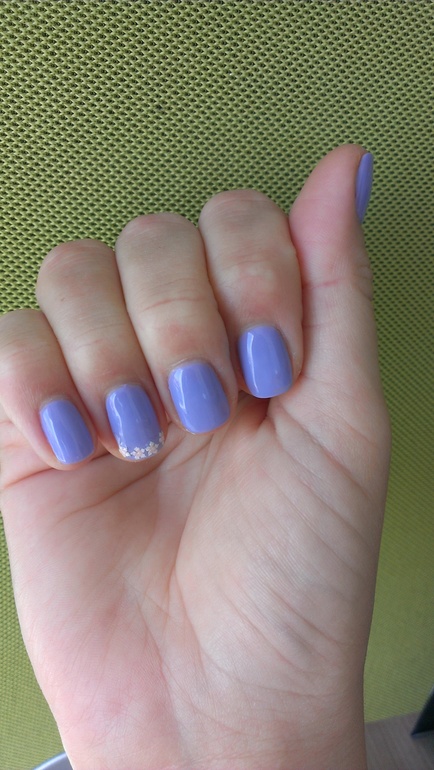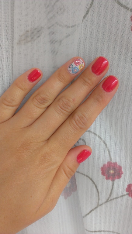 Этот цвет был приобретен давно, но все не было возможности его нанести. Хотелось посмотреть его на ногтях, цветочки просто так уже налепила) Это левая рука: