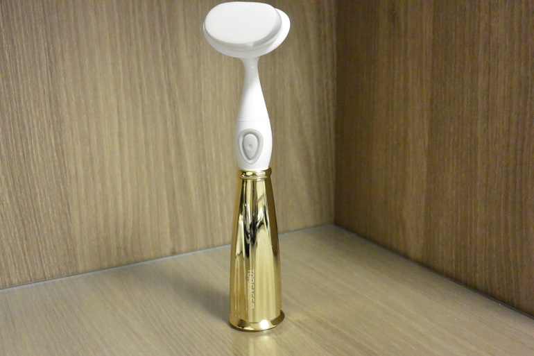 TOP FACE Sonic Pore Cleanser - ультразвуковая щётка для глубокой очистки пор, массажа и удаления омертвевших клеток. Она проводит глубокое очищение лица за счет вибрации щетинок с частотой 10000 колебаний в минуту, которые проникают глубоко в поры и устраняют любые загрязнения в 10 раз эффективнее, чем любые моющие средства. Прекрасно делает пилинг, даря сияющую и яркую кожу. Может использоваться для массажа лица, для снятия макияжа и чистки лица - просто необходимо нанести на кожу необходимое средство, увлажнить ворсинки и начать процедуру. Очищающая щетка имеет водонепроницаемый корпус и может использоваться в помещениях с повышенной влажностью. Это я скопировала её описание.