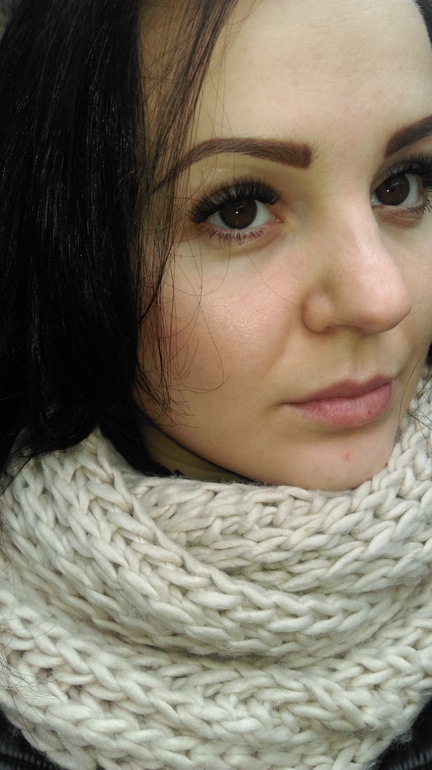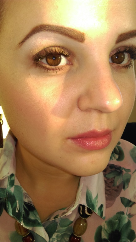 А это фото для сравнения, на глазах стрелки и тушь, своих ресниц практически нет((