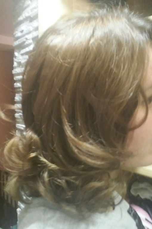 певое фото до, вниз второе в процессе, посередине разровняла немного волосы, по бокам фото сразу как сняла, а потом расчесала)