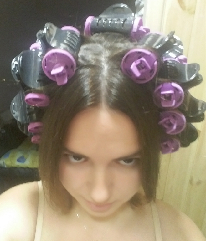 Фото процесса и эффекта от термобигуди. (со спешкой, плохим качеством фото) в итоге пришлось немного увлажнить волосы, потому что кудри мне бараньи не сильно идут) 😄😄😄