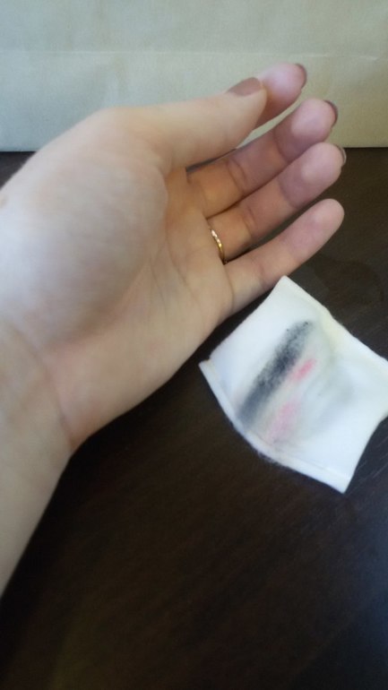 Обалденная! Купила после пенки с улиткой, делающей из меня прыщавую панду. Смывает на ура. На фото на руке СС крем, водостойкая тушь, помада, карандаш для бровей. Как видите, спонжиком не ерзала по коже, все смылось с первого раза. Прижимаем, держим 10 секунд, протираем. ВСЁ. Получаем очищенные губки и реснички. Немного щиплет глаза если попадет. Сначала некомфортно было теперь я лучше жмурюсь и все ок)