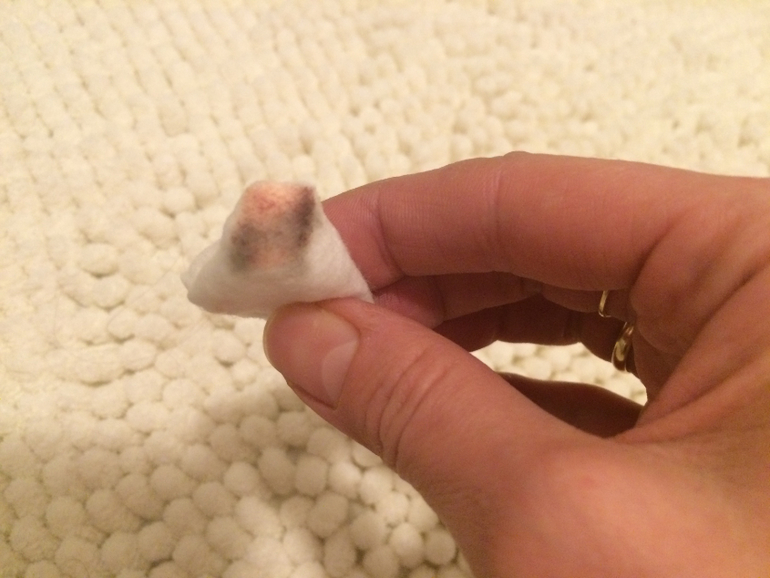 Итак, смоченным ватным диском один раз провожу по косметике и вот, что получается.