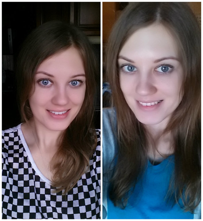 МакияжЯ решила сменить цветовую гамму теней. Всегда красила глаза серебристо-серо-голубыми тенями, и синим и серебряным карандашами. А тут сходила на макияж к знакомой мамочке с этого сайта (Арпине, ты читаешь этот пост???:)))))), которая сделала мне потрясающий профессиональный макияж в коричневой гамме. И вот я осмелилась попробовать наподобие краситься сама (два оттенка коричневого плюс коричневый и золотистый карандаши). Наподобие не получилось, т.к. во-первых, то был вечерний макияж, а мне нужен на повседневку, а, во-вторых, я космически далека от профессионала) Мои подруги кардинально разошлись во мнениях, какой макияж лучше. У меня есть свое мнение, но мое любопытство насчет того, что скажет большинство, зашкаливает) Итак: где макияж (глаза) лучше? Фото под катом.