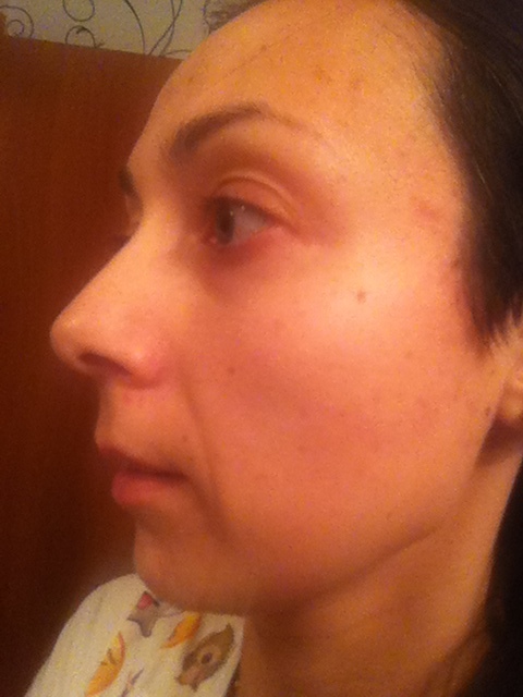 на фотках явно видны проблемы на коже. Красные набухшие(простудные- я так их называю) бугры с гноем внутри. вторая фотография сделана только что и на ней видно сколько их было вообще. по всему лицу, от виска до шеи. Конечно не только крем помог, важный момент с питанием, но питании проблемы нет (мясо, овощи сами растим,а пироги и печеньки печем. физкуль привет всем.. жалко что люди на столько мелочные. А если кто хочет попробовать кремик, то конечно подскажу ГДЕ