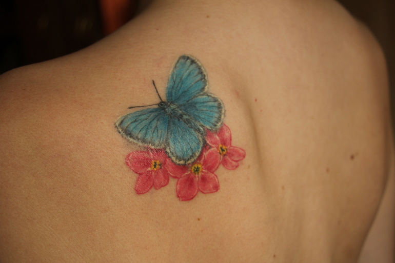 Пирсинг, татуаж, татуЭто бабочка сидит на незабудках. Знаю, банально, но она моя родная :)