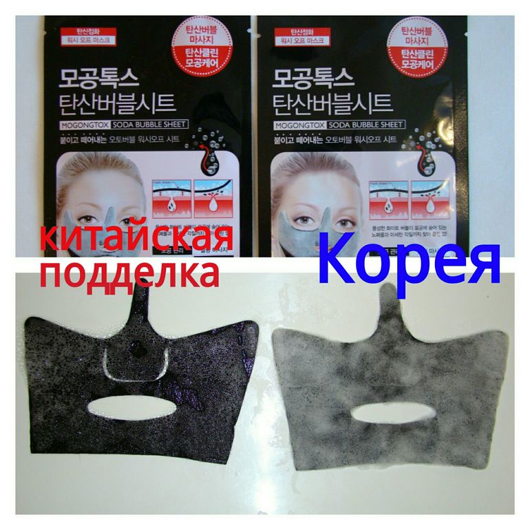 ✋На фото корейская маска уже после использования. Видим густую обильную пену. Китайская не пенится вообще. 😲😲😲Что они туда намешали - ДАЖЕ ПОДУМАТЬ СТРАШНО. Не то, что на лицо налепить. Хорошо, если не облезешь. Но ни о какой эффетивности китайской подделки речи даже не идёт.