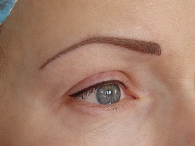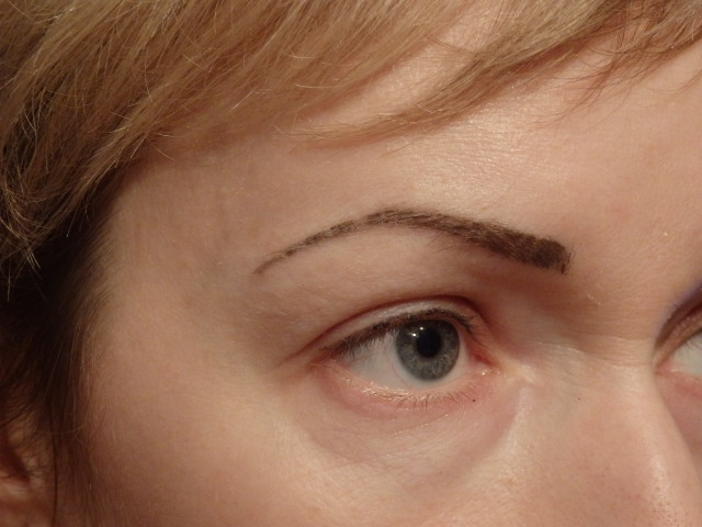 После того как корочка слезла, цвет начал постепенно проявляться- через месяц цвет стал "на место") Я довольна))) на 2-3 года с бровями и стрелкой вопрос решен)