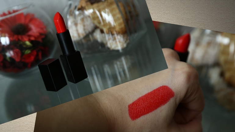 вместо обертки в пупырку. Блесток у нее в массе нет, на губах дает сатиновый финиш. Текстура шелковистая, не подчеркивает шелушения и не сушит губы. Так же довольно стойкая, в принципе спокойной выдерживает перекус. Имеет оочень слабый запах, кажется розы. Но он настолько елеуловимый, что и бог с ним.3. Nars Audacious lipstick в оттенке Lana. Красная помада с теплым подтоном, капельку отдает в рыжину