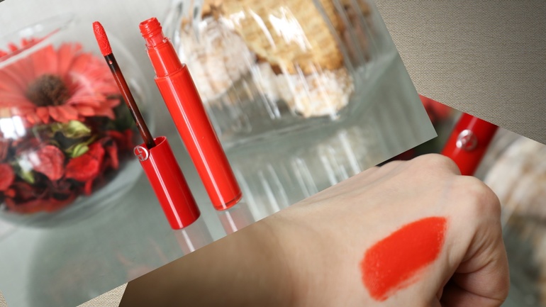 На самом деле он дает матовый финиш, но на фото никак не получилось поймать матовость, т.к. солнышко тут с окон било ) цвет довольно точно вышел. Легкая текстура флюида, ложится на губы абсолютно незаметно, губы не сушит, шелушения не подчеркивает. Стойкость у него не прям-таки вау, но держится достойненько. Еще мне нравится наносить его на скорую руку в качестве тинта (на центр губ и пальчиками распределять), но делаю это только совсем на бегу, чтоб не вырисовывать четкие губы. Запах елеуловимый (для меня отвратительненький) какой-то отдушки.....вот стандартные отдушки для помад )))) но т.к. он практически незаметный, то пропускаю его мимо ушей.5. Giorgio Armani Гель Lip Maestro в оттенке 401. Я про него писала прошлым летом здесь, но немного повторюсь. Цвет....я бы сказала цвет очень спелой хурмы (придумала сравнение, так придумала