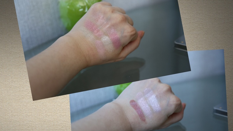 В жизни глаза были ярче, собстно как на свотчах самые яркие оттенки. На скуловой косточке использовала бледно желтый оттенок в качестве хайлайтера. Выглядит потрясающе. Получается очень деликатное свечение (кстати наносила сухой кистью, поэтому можете иметь представление о том, как оттенки переносятся в сухом видеВ целом, получился довольно нежный макияж )
