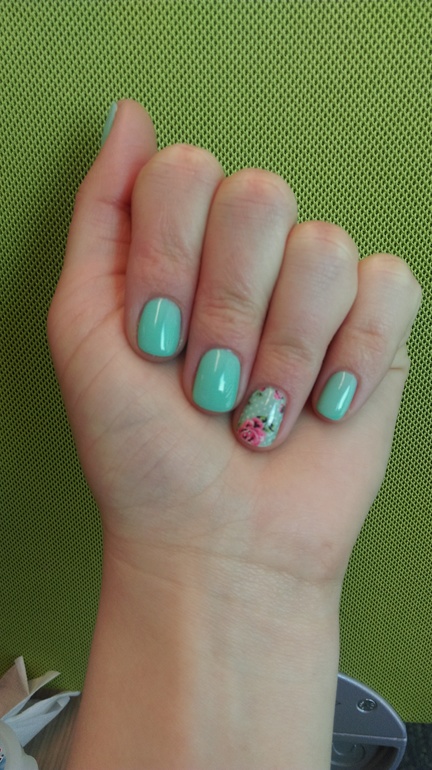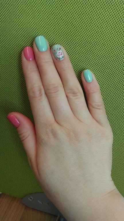 Хороший маникюр, аккуратный, ноготки хорошие. А я сама научилась цветочки подобные рисовать, тоже прикольно.