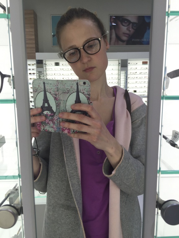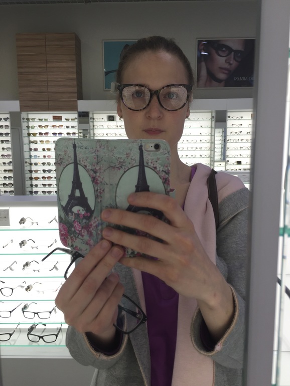 Эксперименты со внешностьюРешила поменять старые очки на новые. Думала с первого захода куплю. Ага! Сплошные сомнения! Девочки, ниже фото того,что мерила. Вроде и нравится,но не так чтобы " ах!". То ли цвет смущает ( черный контрастен на моем лице), то ли форма не моя. Окиньте свежим взглядом,сориентируйте в каком направлении дальше искать оправу.
