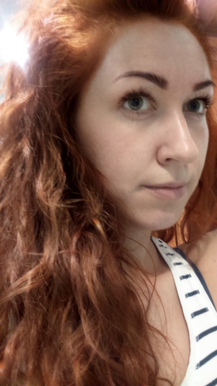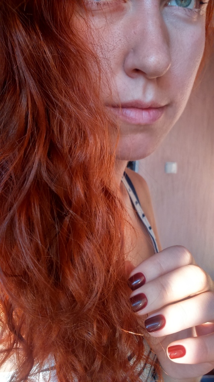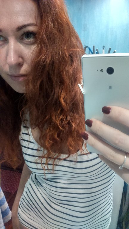 Это сегодня утром вымыла, и ничем неукладывала, даже еле высушила, тк сволочи воду отключили, с этими тазиками кастрюлюми :)) спешила на работу. Встала в 6:30 чтоб утром голову покрасить :))) красила как обычно хной.