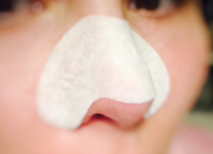 Далее сразу, пока лицо распарено❗️ на мокрый носик 👃🏼 наклеиваем очищающую полоску.