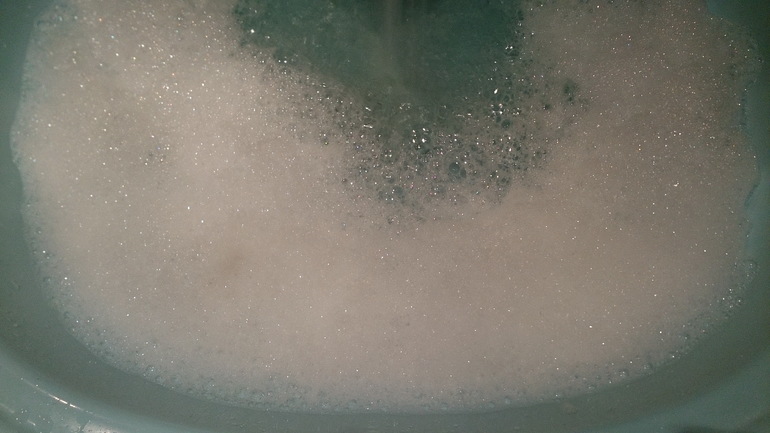 Пена на лице получается как от геля для душа, пузыри крупные, но пена не падает, не бойтесь, вы не заляпаете квартиру!