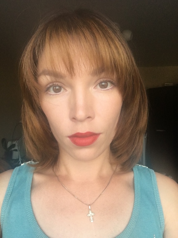 А мне нравтся с челкой, цвет больше нравится светлый, свежее с ним.