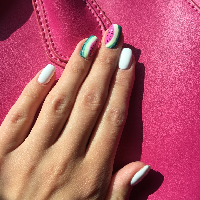 Уход за ногтями, ручками и ножкамиОчень понравилось носить белый маникюр летом, решила повторить, только добавить яркий акцент.