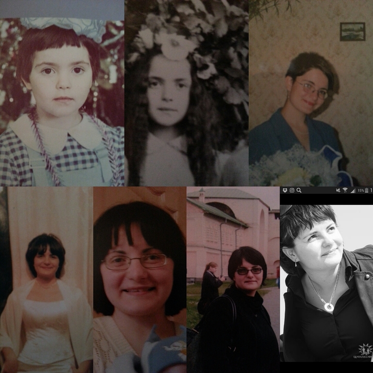 1. 4-5 лет челку сама стригла), 2.9-10 лет в образе Гоголевской русалки, идем праздновать Ивана Купала. 3. 16 лет стриглась под машинку и отключили свет, решили так оставить)) 4. 19 иду под авенец. 5. 20 год в браке прибавил килограммы) 6. 24 перед разводом 7. 26 в свободном палете)