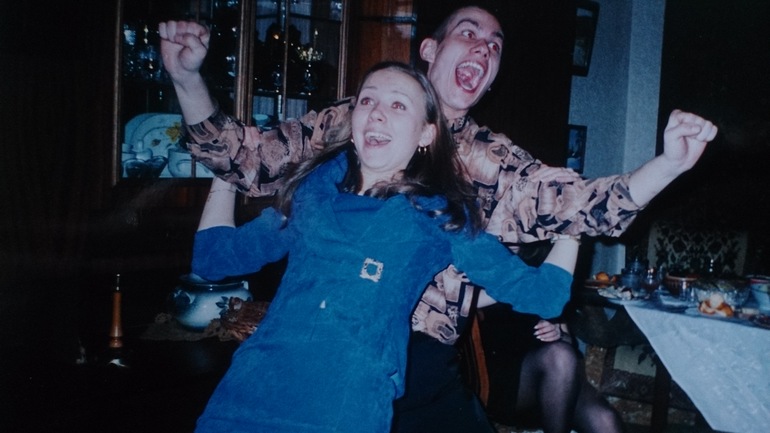 Да-да, челка Карлсон, перламутровые губы бабы Дуси - продавщицы мясного отдела, цветастые обои, светильник-дуршлаг с разноцветным сиянием - все это говорит нам о том, что мы наблюдаем типичный антураж 90-х. (Где-то была фотка в зеленых лосинах, которые "во мне самом родят лося", но искать не буду).