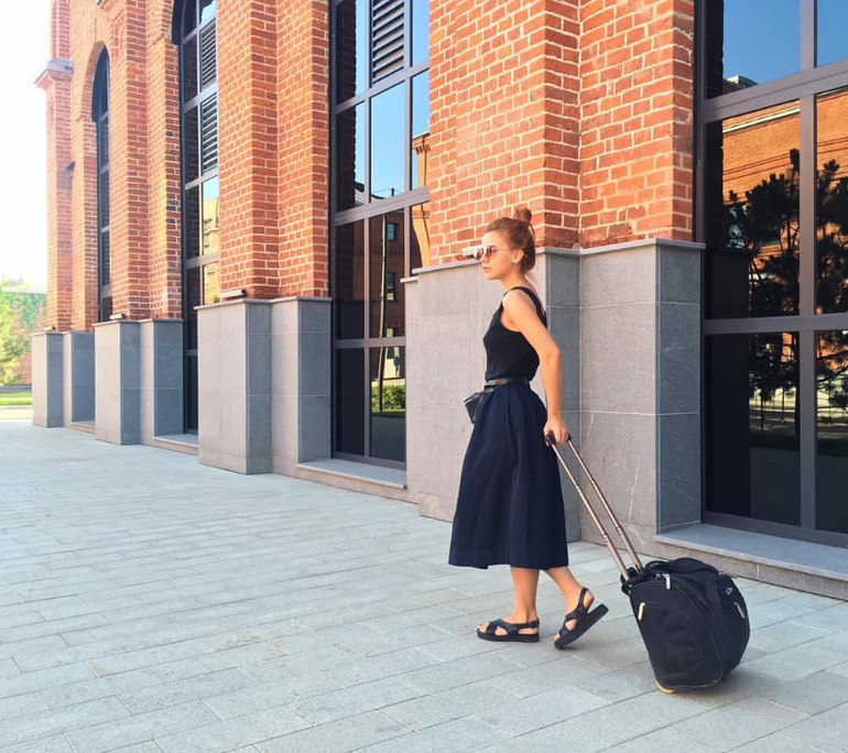 Оцените образЯ, мой верный конь (чемодан) и черно-синие комплекты))). Я в страшном ритме наворачиваю круги по Москве и подмосковью, и работаю на ногах, поэтому удобство для меня - это невероятно важно.