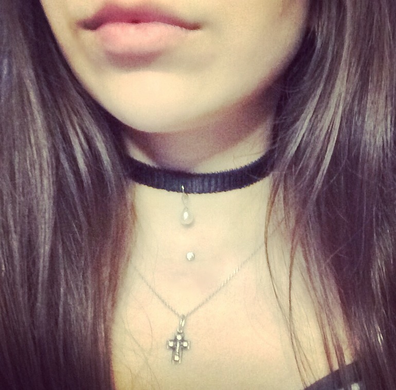 ой, я сначала подумала,что брульянт с окантовки кофточки отклеился и прицепился на горло))) задушило брульянтами)))