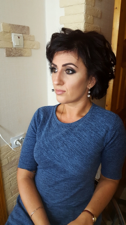 макияж вас старит, такие черные глаза не нужно делать. наряд выбран неверно, колготки тем паче.