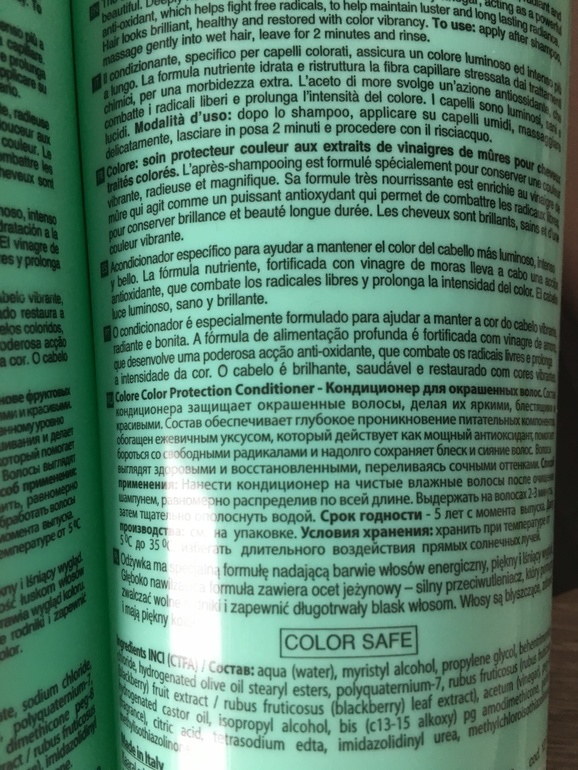 Комплекта мне хватило на два месяца , за это время использования мне захотелось приобрести и тот, и другой себе в большом объеме, что бы пользоваться постоянно. Поэтому в ближайшее время обязательно себе куплю шампунь и кондиционер по 1000 мл, они отлично подходят для поддержания насыщенного цвета волос, до следующей покраски.