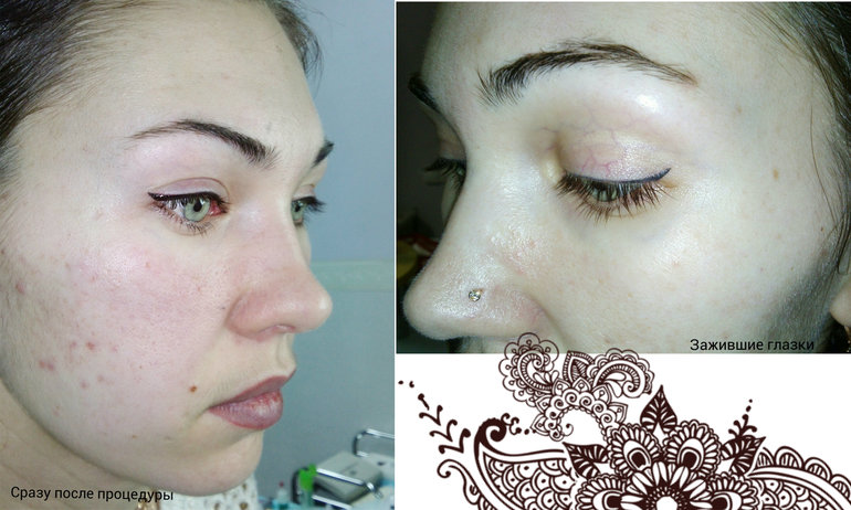 На фото видно какие стрелки сразу после процедуры, они широкие и яркие тк присутствует отек, после заживления сходит немного цвет.