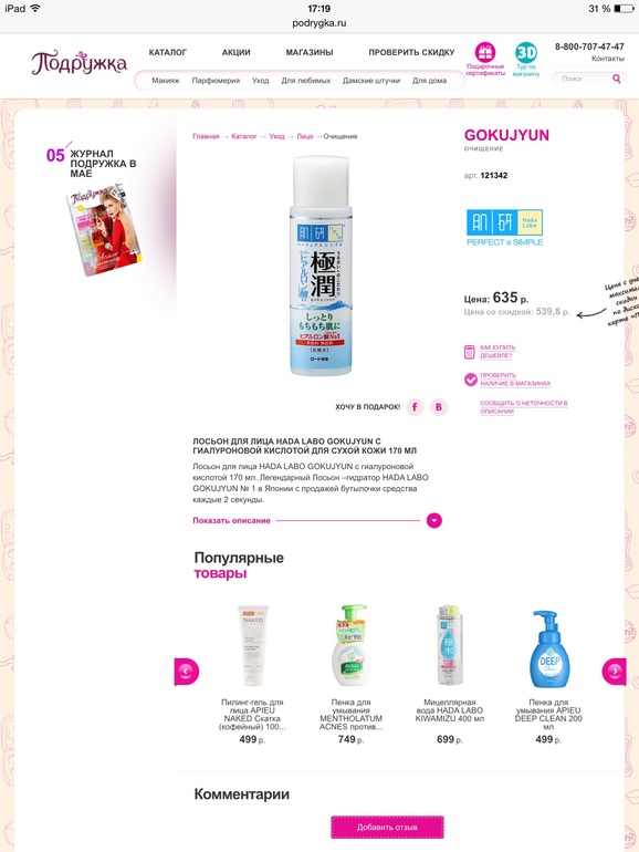 Hada Labo в подружке по подарочной цене продается. У меня тоник и ре молочко гиалруновое - шикарное, лучше аптеки. Авен много лет использовала, если что