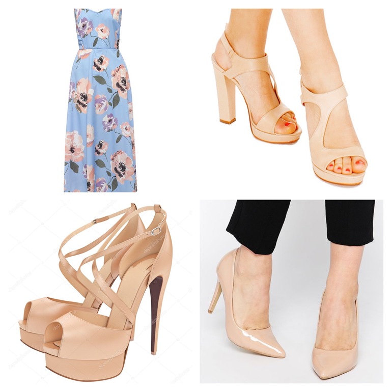 Однозначно открытая обувь, пастельного оттенка, сюда подойдут бежевые, песочные, персиковые и лавандовые оттенки, однотонные только