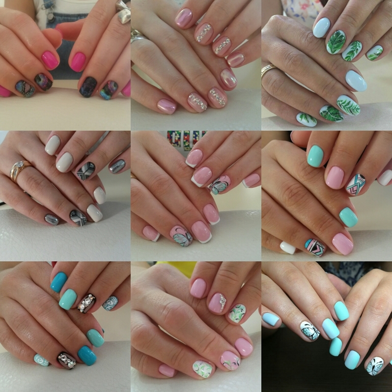 это в Краснодаре, что касается дизайнов. А в большинстве девочки делают однотонные ногти любых цветов и сверху втирка жемчужная или майский жук и френч этим летом 1000000раз был.